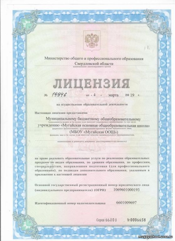 Адрес местонахождения образовательной организации* 624622, Свердловская обл, Алапаевский р-н, Мугай с, 70 лет Октября ул, владение № 17